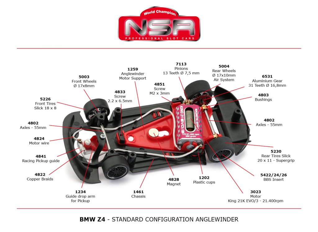 NSR Slotcars im Maßstab 1:32 fahren auf allen analogen Schienen ab dem Maßstab 1:40 wie Carrera Profi ,Evolution, Exclusiv, Ninco, Scalextric und SCX. Die empfohlene Betriebsspannung des Herstellers beträgt 12V. Dadurch sind diese Fahrzeuge auch für die Carrera-Spannung von14,8V.geeignet.